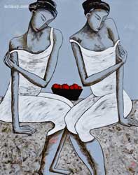In her new series of oil and mixed media paintings titled " Las Piadosas”, Enriqueta Aguilo , shows women who describe their different emotional states. Her figures appear static, frozen, appear to reside in a vacuum where the artist prefers to concentrate on the expressions of their bodies. Thus explores how to simplify the forms, which together with the ornamentation and texture of its backgrounds, introduces us to a climate of spiritual sensuality.